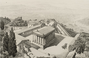 Das antike Pergamon, die Hauptstadt des hellenistischen Attaliden-Reiches und eine der wichtigsten Städte der römischen Provinz Asia, liegt auf einem 300m über der Kaikos-Ebene emporragenden Felsrücken. Die systematischen Ausgrabungen in Pergamon begannen im Jahr 1878 im Auftrag der Königlichen Museen zu Berlin wurden dann aber ab 1900 vom Deutschen Archäologischen Institut (DAI) übernommen und dauern noch bis heute an. Die ersten Grabungen galten dem berühmten Pergamonaltar. Bei den Untersuchungen bis 1900 wurde der größte Teil der antiken Bauten auf dem oberen Burgberg ausgegraben: die Königspaläste, das Theater, der Athenatempel, der Pergamonaltar, der Tempel des Trajan und der obere Markt mit dem Zeutstempel. Ab 1901 folgten neben der Freilegung einiger antiker Wohnhäuser die Großbauten auf den Hängen des unteren Burgberges: das Gymnasion, die Tempel der Hera und der Demeter, der Untere Markt sowie das Stadttor.